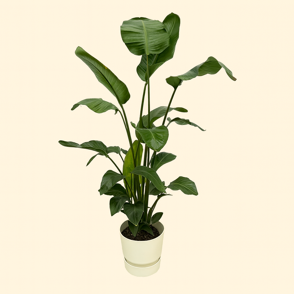Strelitzia Nicolai Incl. Elho Greenville Bloempot Wit - H 180 cm - Ø 30 cm