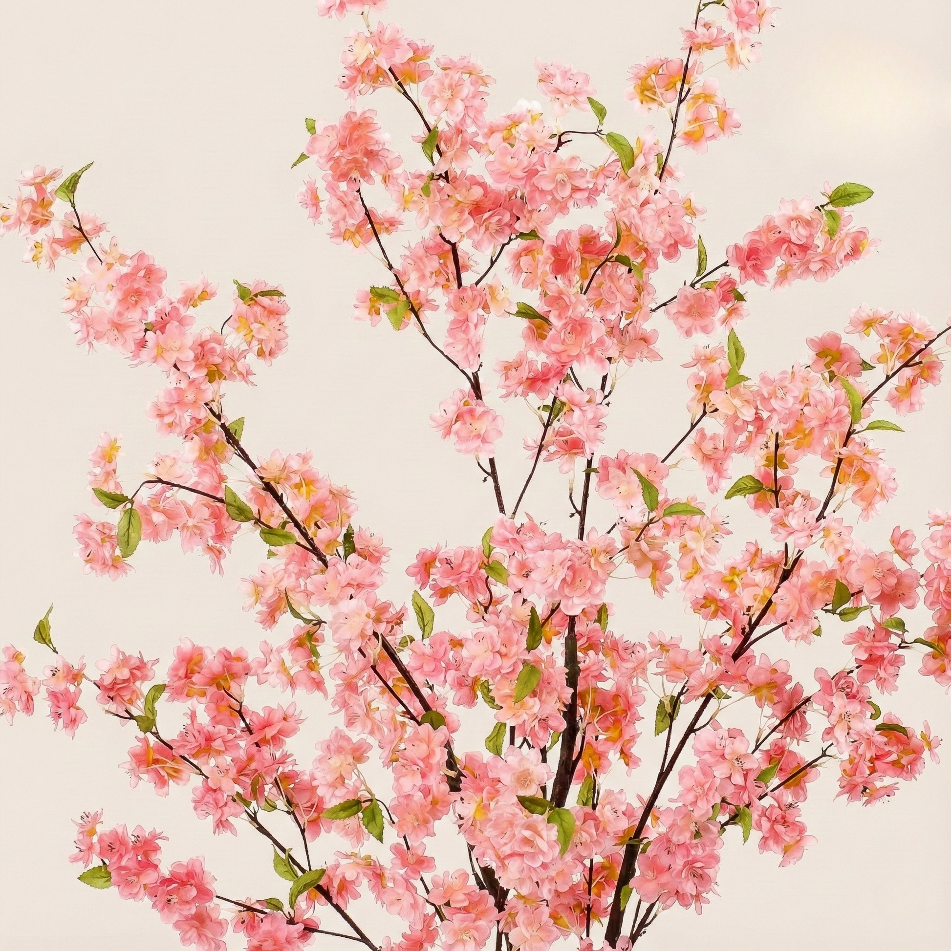 Vergeet de standaard kunstplanten deze Prunus is een klasse apart. De boom heeft een indrukwekkende, volle kroon met verfijnde bloesems die tot in het kleinste detail zijn nagemaakt. De zachte kleurnuances en de levensechte takken vangen het licht prachtig op waardoor hij een rustgevend en chic statement maakt in je woonkamer, kantoor of entree. Tussen de bloemenpracht ontdek je subtiele knoppen en jonge blaadjes wat zorgt voor een ongekende diepte en realisme.