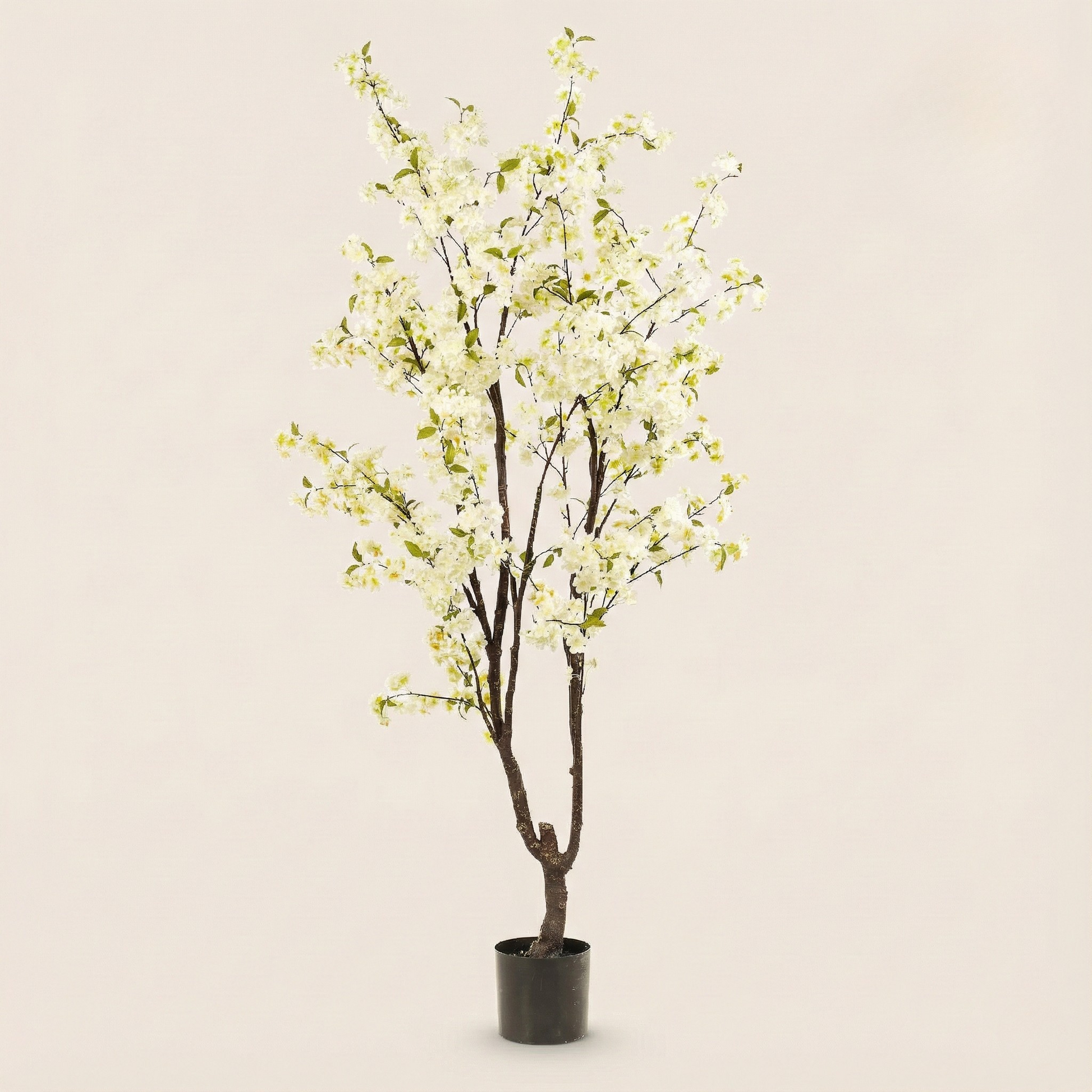 Vergeet de standaard kunstplanten deze Prunus is een klasse apart. De boom heeft een indrukwekkende, volle kroon met verfijnde bloesems die tot in het kleinste detail zijn nagemaakt. De zachte kleurnuances en de levensechte takken vangen het licht prachtig op waardoor hij een rustgevend en chic statement maakt in je woonkamer, kantoor of entree. Tussen de bloemenpracht ontdek je subtiele knoppen en jonge blaadjes wat zorgt voor een ongekende diepte en realisme.